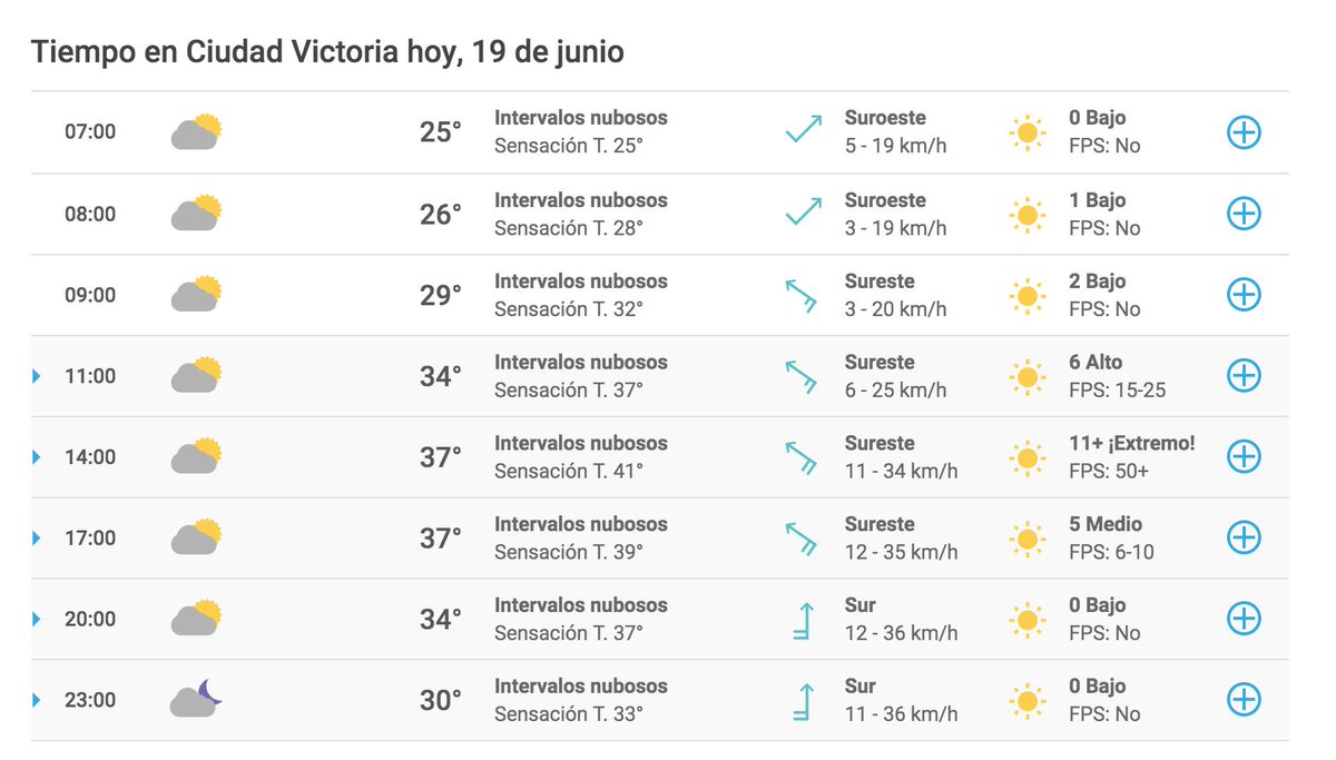 El Clima En Ciudad Victoria Dia Cdvictoria Tamaulipas Cielo Mayormente Despejado Maxima De 34 C Vientos Del Sse De 15 A 25 Km H Https T Co 74mgznlbyu Facebook