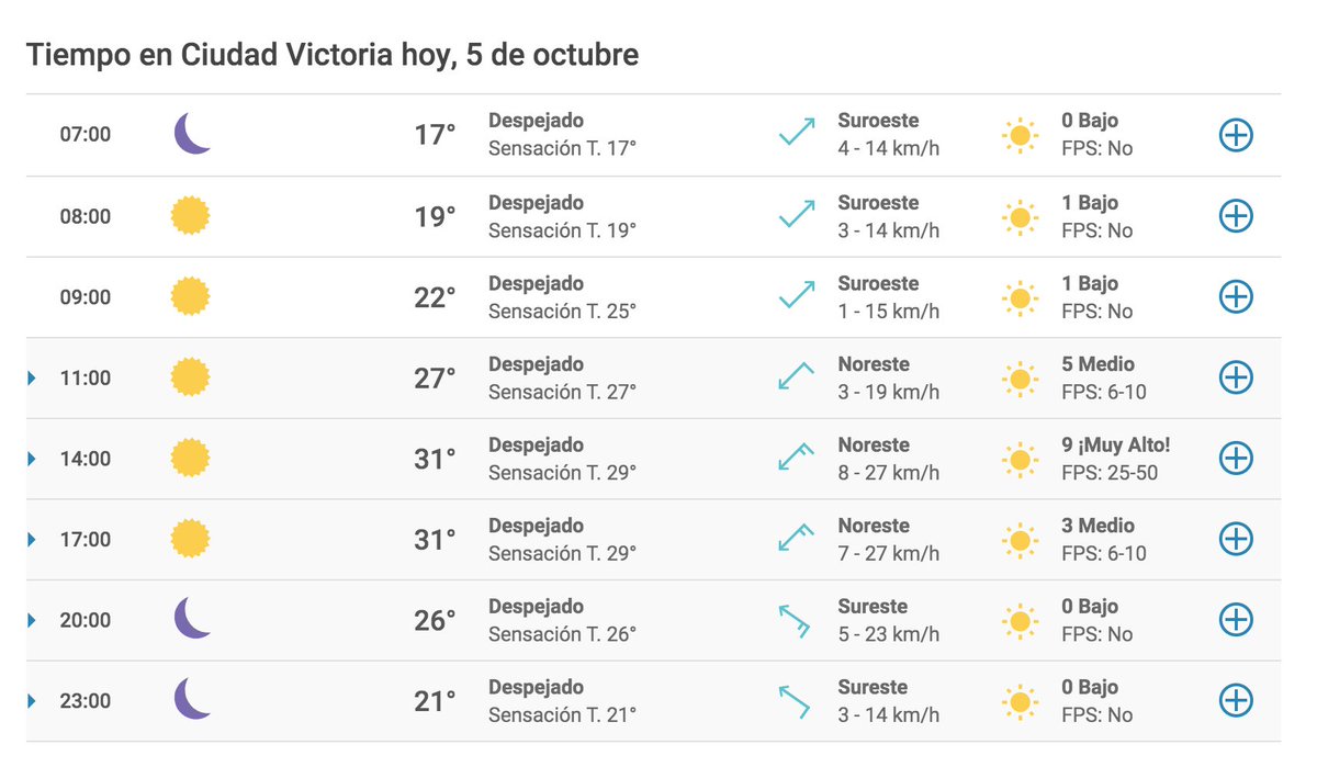 Prepárate con el pronóstico para los próximos 10 días más preciso para Ciudad Victoria Tamaulipas. Tiempo en Ciudad Victoria Tamaulipas. Para obtener los datos de cualquier lugar que necesite elija su ciudad de la lista.